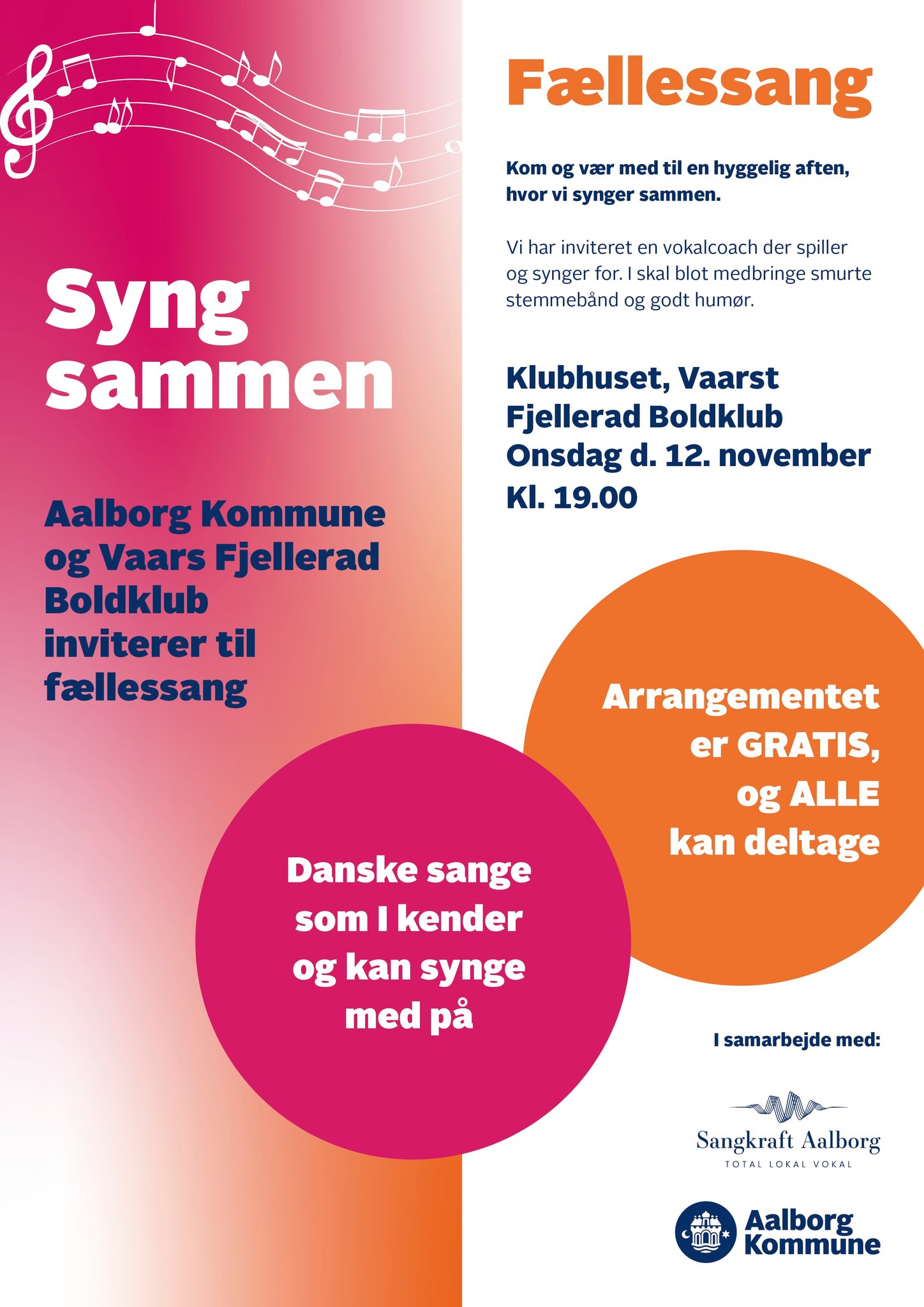 Aalborg Kommune og Vaarst Fjellerad Boldklub inviterer til fællessang med danske sange, som alle kan synge med på.