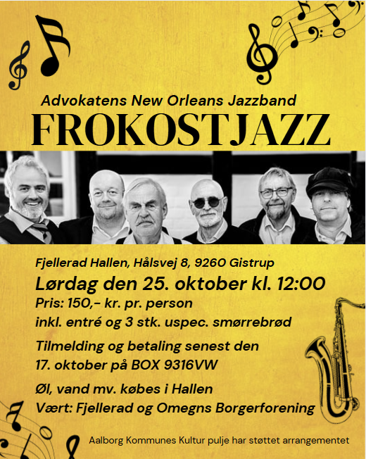 Glæd dig til en hyggelig og stemningsfuld lørdag i Fjellerad Hallen, når Advokatens New Orleans Jazzband spiller op til frokostjazz.