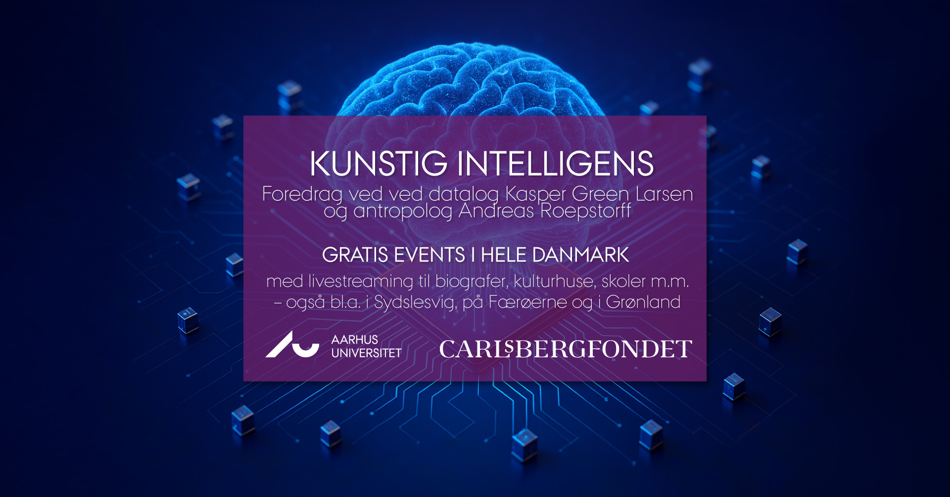 Oplev et aktuelt foredrag med datalog Kasper Green Larsen og antropolog Andreas Roepstorff, som giver hver deres perspektiv på, hvad AI betyder – både teknisk og menneskeligt.